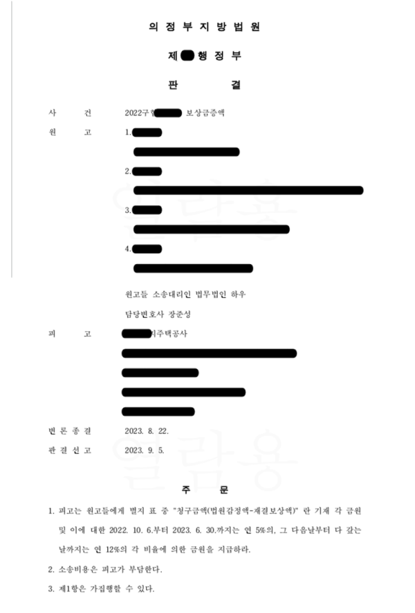 법무법인 하우는 '수목' 소유주들을 대리하여 사업시행자가 제시한 수목 보상금이 너무 적다고 판단하여 협의에 응하지 않았고,