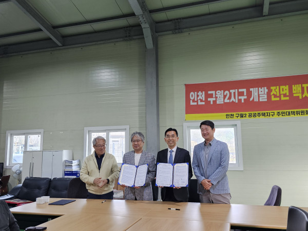 "인천구월2 공공주택지구"의 [인천구월2 공공주택지구 주민대책위원회(위원장 오왕균)]와 [법무법인 하우(대표변호사 정양현)]가 지난 2024. 4. 16. 업무협약식을 진행하였습니다.