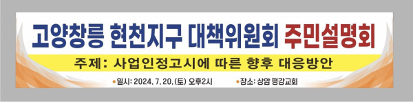 2024. 7. 20. [고양창릉 현천지구 대책위원회]에서 주민설명회가 열렸습니다.