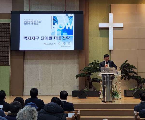 [법무법인 하우]는 통합주민대책위원회의 자문 로펌으로서 이날 창립총회에서 전반적인 수용 절차 및 보상에 관한 설명을 진행하였고,