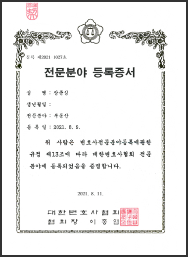 대한변호사협회 등록 부동산 전문변호사