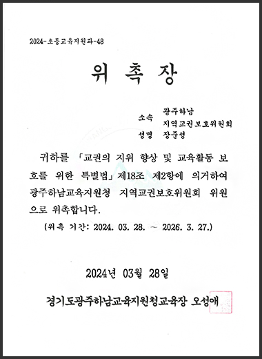 현 광주하남지역교권보호위원회 위원