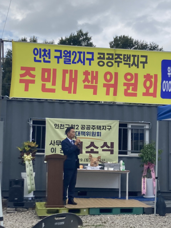 지난 2024. 10. 19. [인천구월2 공공주택지구 주민대책위원회(위원장 오왕균)]의 사무실 이전 개소식 및 주민간담회가 있었습니다.