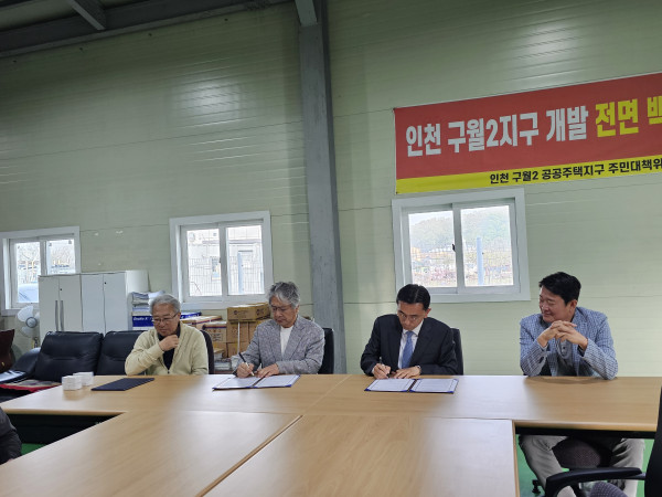 "인천구월2 공공주택지구"의 [인천구월2 공공주택지구 주민대책위원회(위원장 오왕균)]와 [법무법인 하우(대표변호사 정양현)]가 지난 2024. 4. 16. 업무협약식을 진행하였습니다.