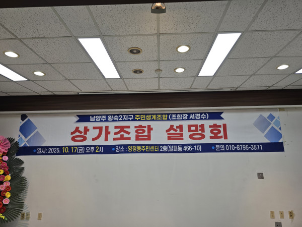 지난 2025. 10. 17. 남양주 왕숙2지구 생활대책용지 조합 결성을 위한 상가조합 설명회가 개최되었습니다.