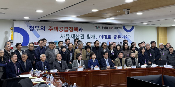 "공공주택지구 전국연대 대책협의회(의장 임채관)"(이하 '공전협')는 지난 2026. 1. 19. 국회의원회관에서 "정부의 주택공급정책과 사유재산권 침해, 이대로 좋은가?"라는 주제로 신년 정책포럼을 진행하였습니다.